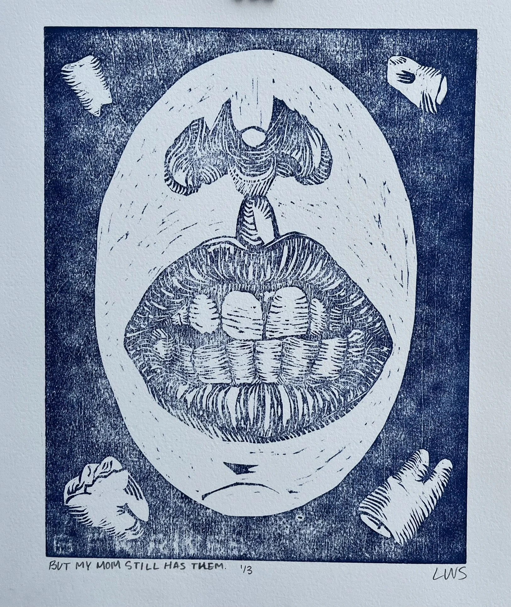 10” x 12” paper, 8× 10 original relief woodblock print. Oil based ink, on archival quality cotton printmaking paper.